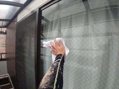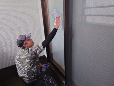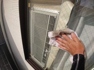 窓やベランダ笠木など綺麗に拭き掃除を行います。