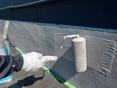 中塗りが乾燥した後、さらに仕上げの上塗り塗料を塗布します。