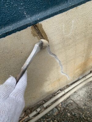 浮きやひび割れの状態を打診して確認し、補修する箇所にマーキングをします。