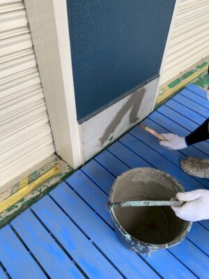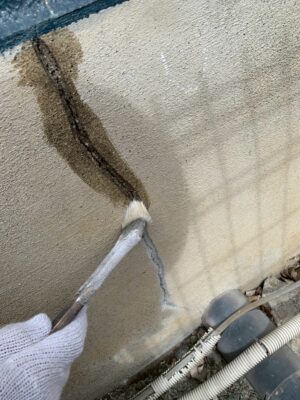 シーリング材の上から、ポリマーセメントモルタルで埋め戻し、表面を平滑に仕上げます。