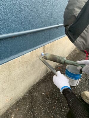 プライマーが乾燥した後、シーリング材を溝にしっかりと充填していきます。