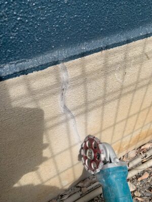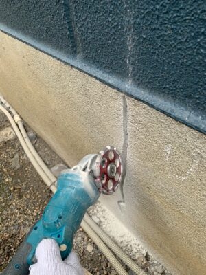 ディスクグラインダーなどを使用し、基礎のひび割れに沿って幅約1㎝、深さ1~1.5㎝程度のU字の溝を掘ります。