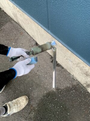 を注入する工法です。ひび割れや浮き部分に注入されたエポキシ樹脂が硬化することで、ひび割れを接着し一体化