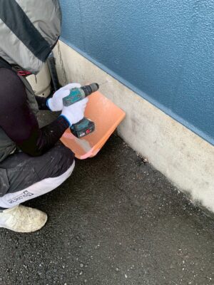 施工手順②:注入口の穿孔・アンカーピンの挿入