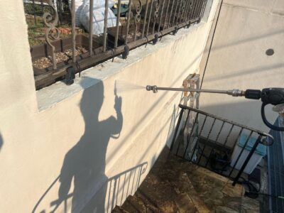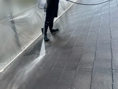 外壁塗装工事、屋根塗装工事の前には必ず高圧洗浄を行います。