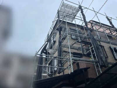 大阪市平野区 工事最終日の作業の様子/足場解体作業