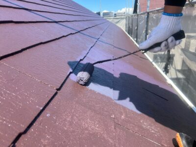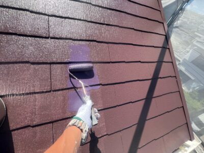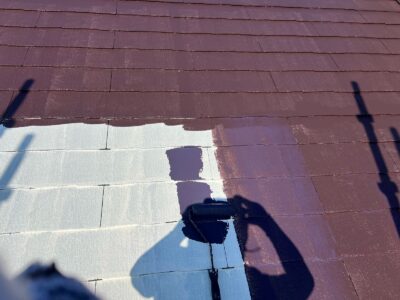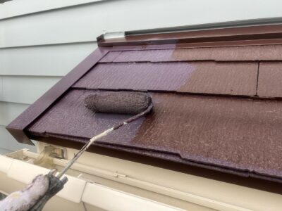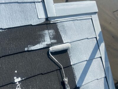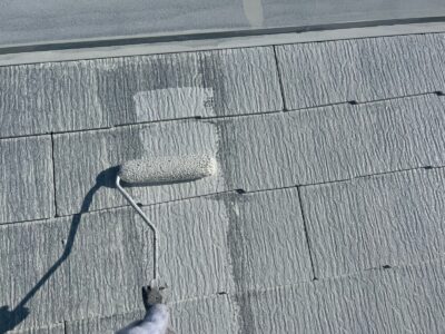 下塗りを2回行う理由としては、劣化した屋根材の吸い込みを完全に止めて、塗料の密着性を高めることと、
