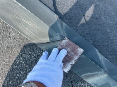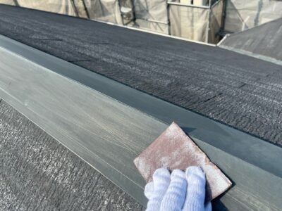 【下地処理】棟板金の釘打ち・ケレン作業