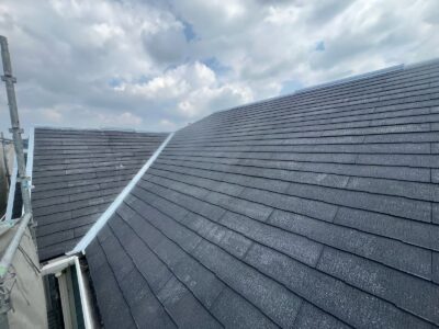 スレート屋根の塗り替えでは、塗料が屋根材の重なり部分の隙間を塞いでしまうことがあります。