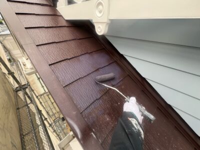 上塗りは美観だけでなく、屋根を雨や紫外線から守る耐久性を高め、美しい光沢のある仕上がりにします。