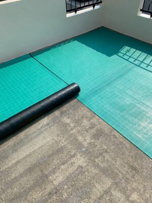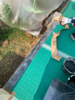 プライマーが乾燥したら、通気緩衝シートを敷き詰めていきます。