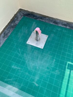 シートを貼り終えたら、下地の水蒸気を外部へ排出するための脱気筒を設置します。