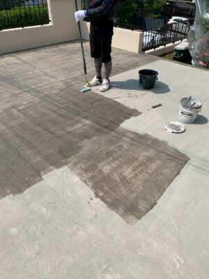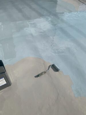 1層目が乾燥した後、2層目のウレタン防水材を塗布していきます。