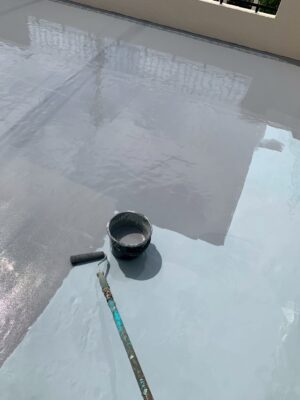 防水層が完全に乾燥したら、保護のためのトップコートを塗布していきます。