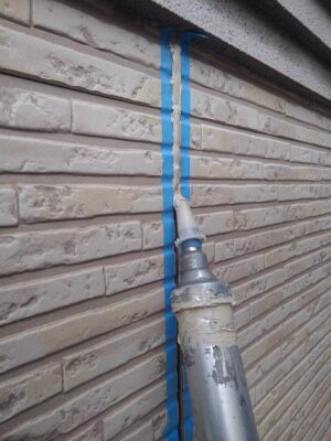 外壁材同士の継ぎ目にシーリング材を充填していきます。