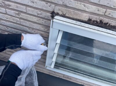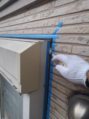 既存のシーリング材をカッターで切り込みを入れて、丁寧に撤去していきます。