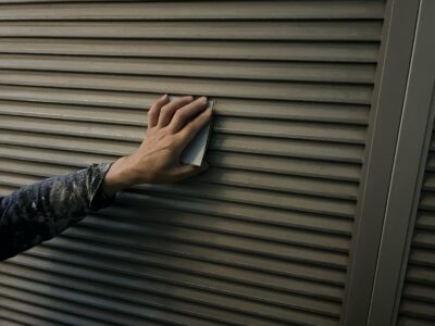 吹き付け塗装で行うことで、凸凹のある複雑な形状の雨戸でも、ムラなく均一に塗装ができます。