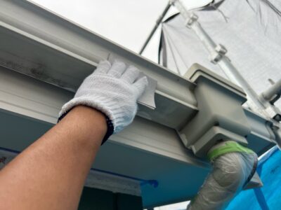 雨樋も、紫外線や雨風に晒され劣化します。雨漏りの原因にもなる部分ですのでしっかりと塗っていきます。