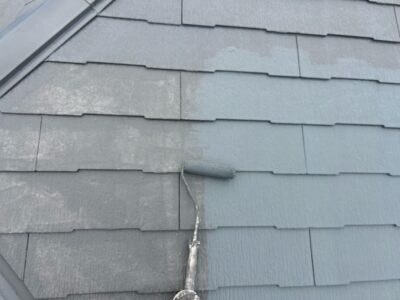 下塗りを2回行う理由としては、劣化した屋根材の吸い込みを完全に止めて、塗料の密着性を高めることと、