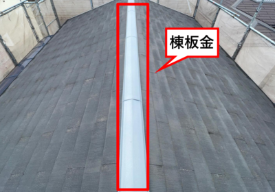 棟板金とは、スレート屋根やカラーベスト屋根、金属屋根などの屋根の頂点部分に取り付けられている板金