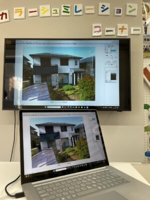カラーシュミレーションは、お家の写真をパソコンに取り込み、外壁や屋根、付帯部などの色を変えることで、