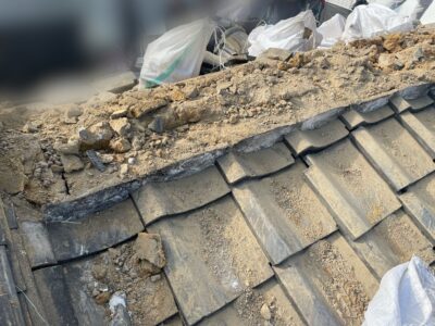 葺き土はもともとは粘着力のある粘土状態なのですが、60年以上も経過しているので、今は乾いて瓦の