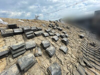 まずは、既存の屋根(瓦)を頂上部から撤去していきます。
