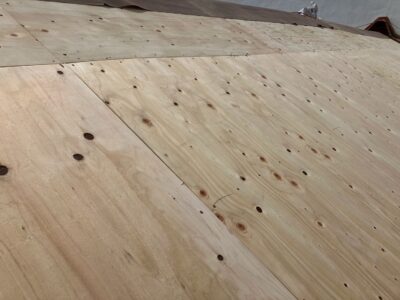 野地板の増し張り作業になります。新しい野地板を張り強度を高めます。