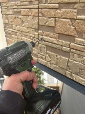 サイディング外壁の浮いている部分を、ビスでしっかり固定します。