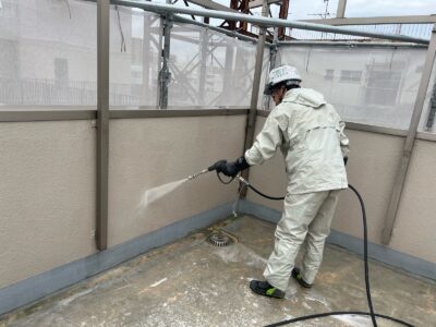 高圧洗浄は、外壁塗装の仕上がりや耐久性を高めるために不可欠な下地処理作業です。