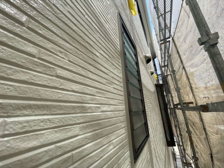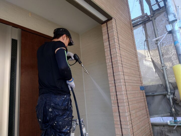 屋根塗装の最後の作業、上塗り作業になります。美観だけでなく、紫外線や雨からしっかり守ってくれる塗膜の完成です。外壁:下塗り