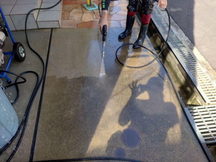 高圧洗浄作業になります。土間:高圧洗浄