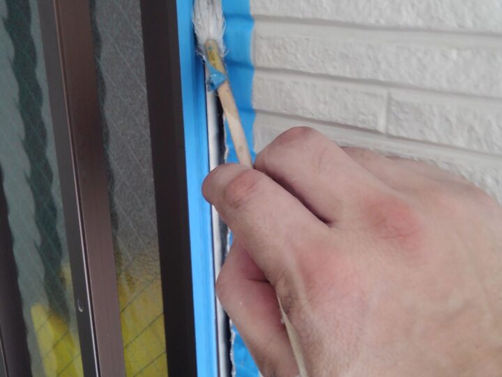 接着剤の役割を担うプライマーを塗布していきます。シール工事:シーリング充填