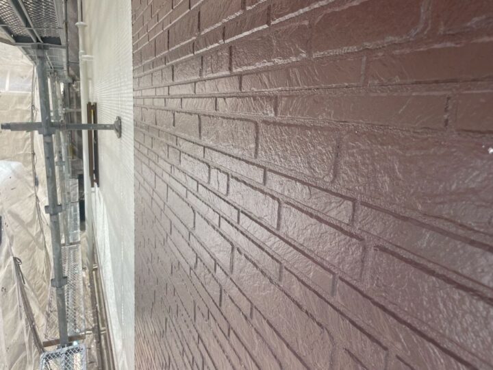 2度塗りすることで厚みを持たせ、壁面を平らにするとともに、上塗り剤を補強する役割があります。外壁:上塗り