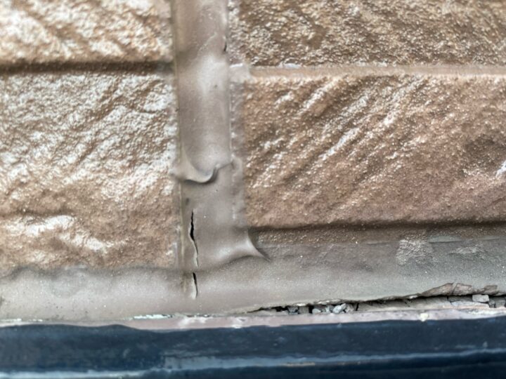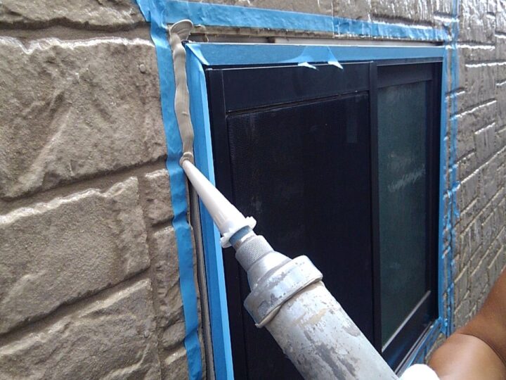 クリヤー塗装の場合、先にクリヤー塗装をしてからシーリング材は後打ちするため、塗装前に撤去します。シーリング材:撤去作業