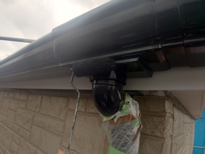 雨樋も、紫外線や雨風に晒され劣化します。雨漏りの原因にもなる部分ですのでしっかりと塗っていきます。帯板:塗装