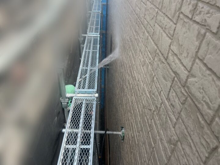 普段、お掃除できない所も綺麗に洗います。外壁:高圧洗浄