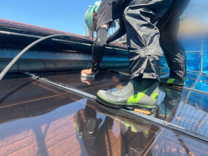 既存のシーリング材撤去作業になります。屋根:カバー工法(スーパーガルテクト)