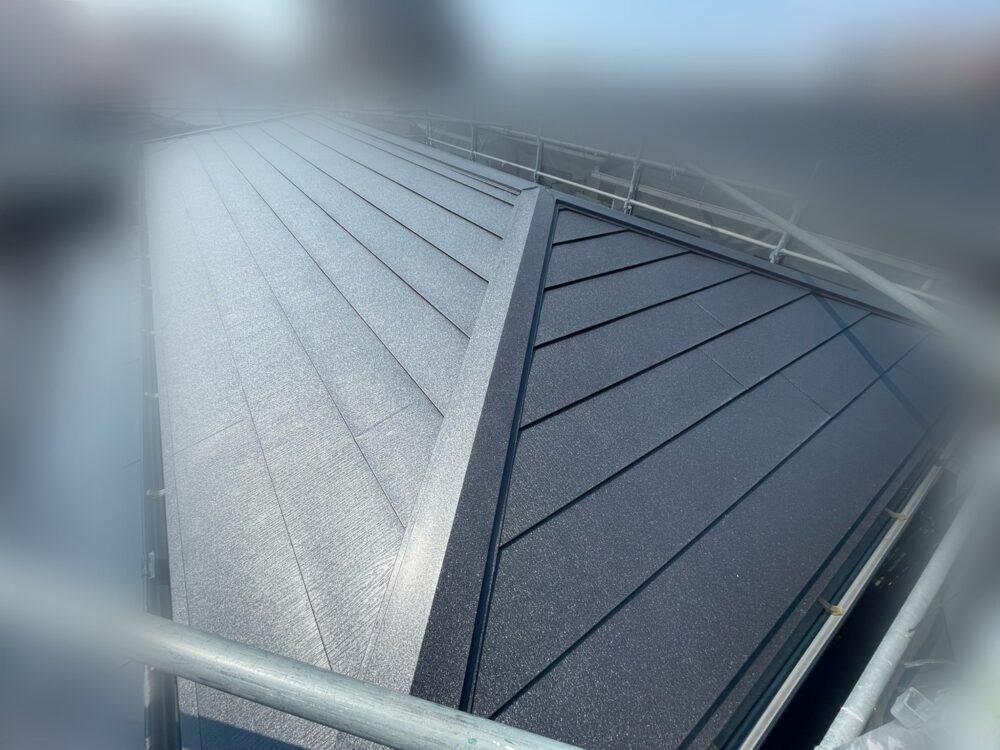 IG工業のスーパーガルテクト張り付け作業になります。屋根:カバー工法(スーパーガルテクト)