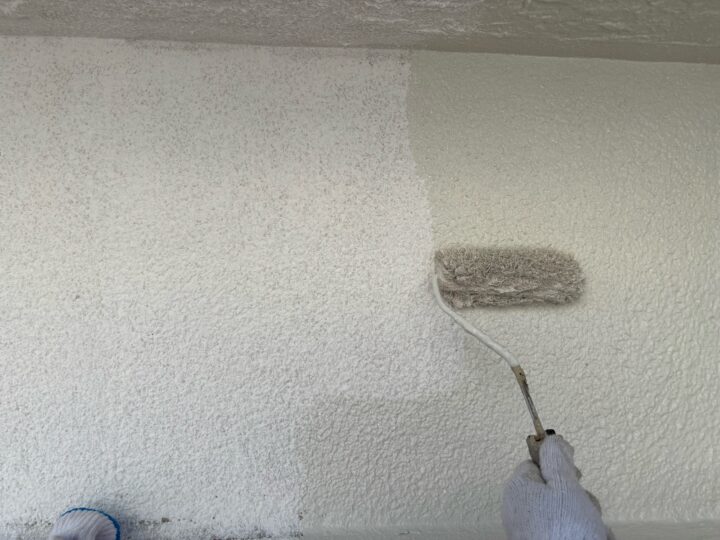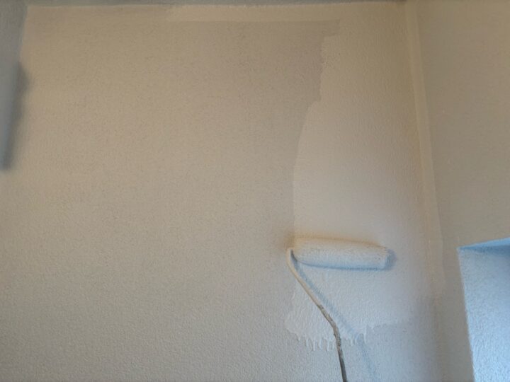 2度塗りすることで厚みを持たせ、壁面を平らにするとともに、上塗り剤を補強する役割があります。