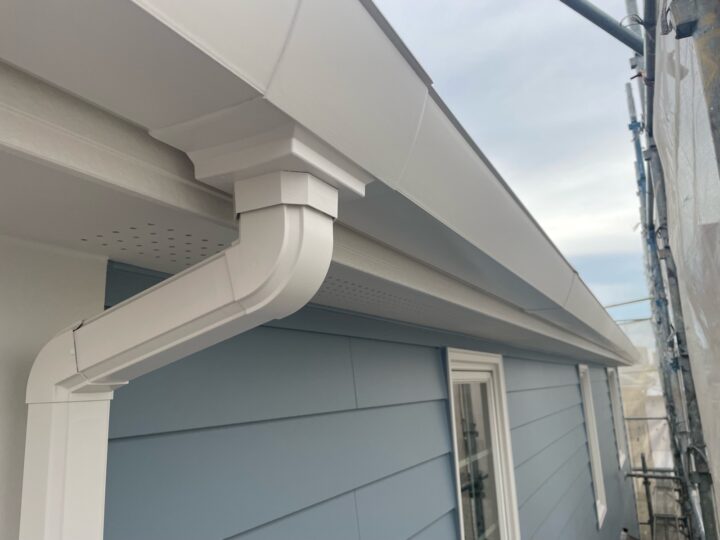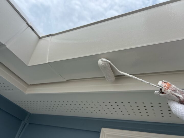 上塗りは、最後の仕上げとして行う塗装工程です。塗膜に十分な厚みを持たせ、強度を上げることができます。雨樋:塗装