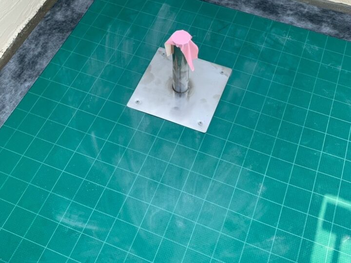 下地の水蒸気を外部へ排出するための脱気筒を設置します。ウレタン防水通気緩衝