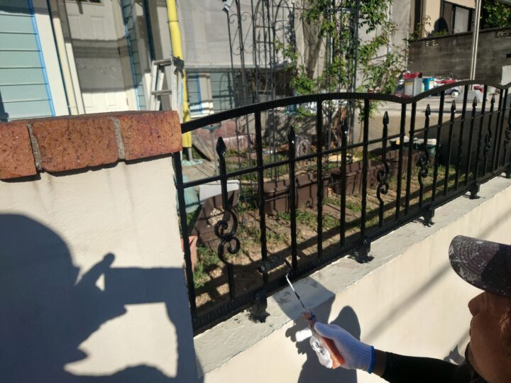 フェンスの塗装作業になります。シャッター:塗装