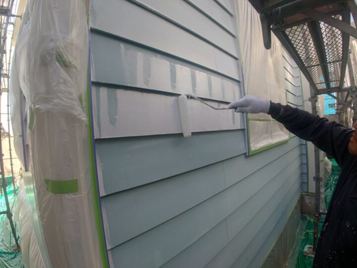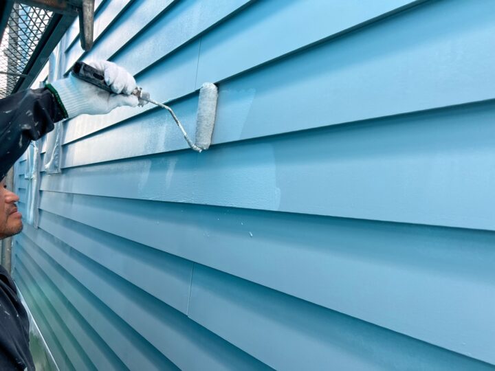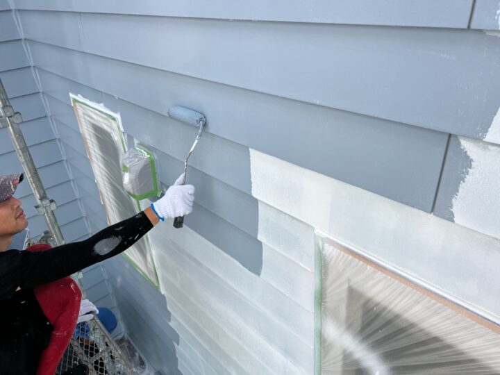 屋根塗装の最後の作業、上塗り作業になります。美観だけでなく、紫外線や雨からしっかり守ってくれる塗膜の完成です。外壁:下塗り