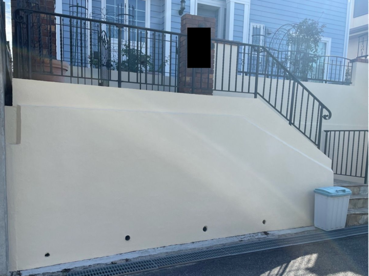 2度塗りすることで厚みを持たせ、壁面を平らにするとともに、上塗り剤を補強する役割があります。外壁:上塗り