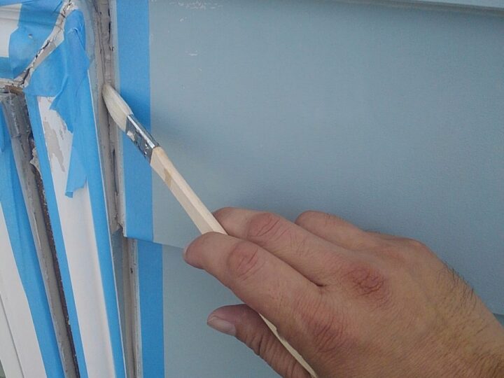 接着剤の役割を担うプライマーを塗布していきます。シール工事:シーリング充填