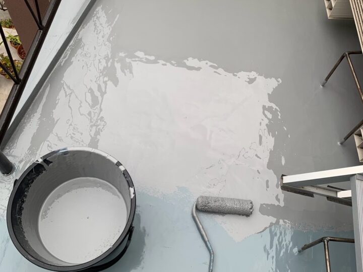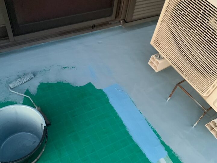 大阪市東住吉区 ベランダ・ウレタン防水通気緩衝工法 工事写真レポート(施工中)