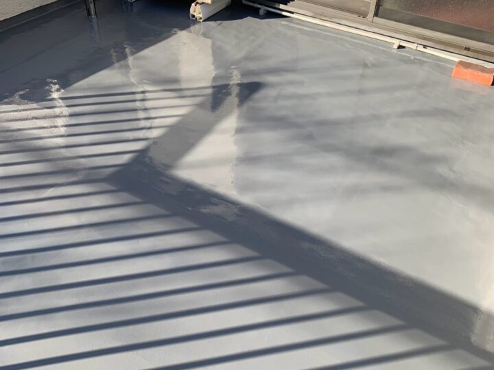 硬化後、紫外線などから防水層を保護するためトップコートを塗布して施工完了になります。