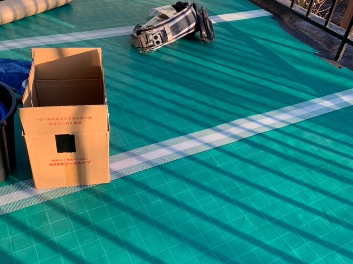 通気シートを張ったら、次に通気シートのジョイント部分にジョイントテープ、端部には専用のテープを張っていきます。